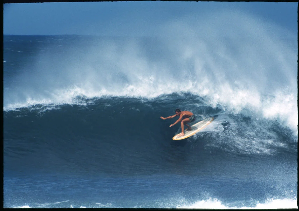 "I think it was October ‘78, we had big low in a perfect position to generate a north-northwest at Sunset that was far and above the best Sunset that anybody that shared that day with any day previously or since. It was just one of those unique days where it was fifteen, possibly bigger, and lined up all the way from Backyards all the way across. Kimo Hollinger paddled over to the point, and then Eddie (Aikau) and I followed him. The three of us were outside of Backyards and we could see the Kuilima Hotel (now Turtle Bay) from where we were sitting, we were so far out and I picked up two waves all the way from Backyards all the way through the regular lineup. Those were probably the best two rides I’ve ever had in my life."